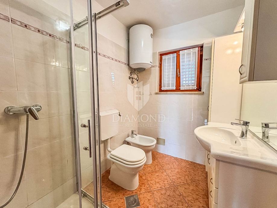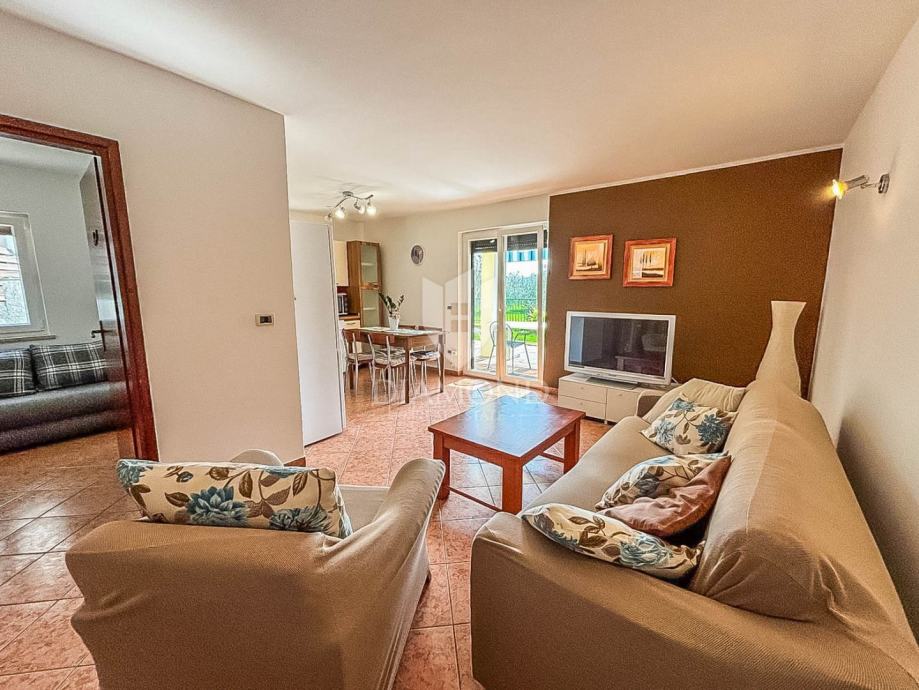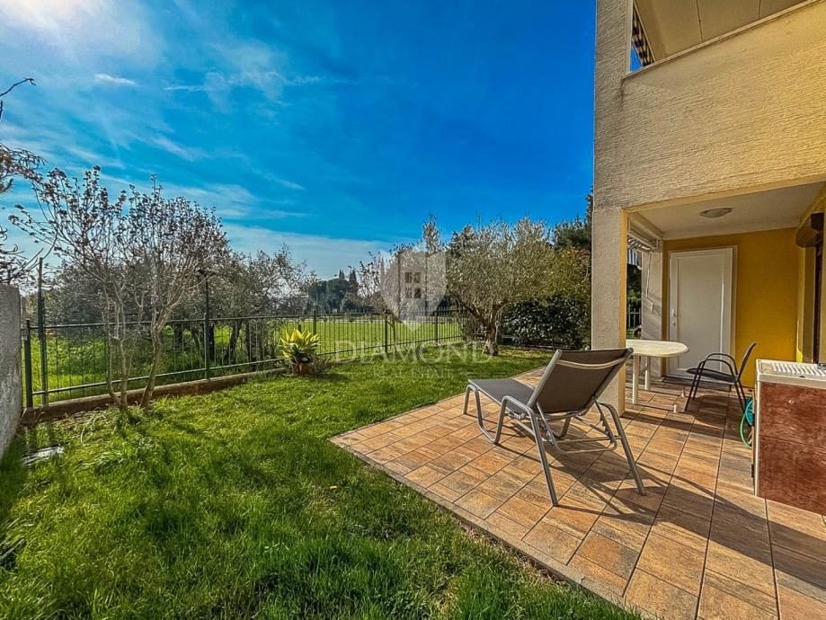 Stan se prostire preko 51 m² i funkcionalno je raspoređen. Sastoji se od dvije spavaće sobe, kupaonice s prozorom koja osigurava prirodno svjetlo i ventilaciju, kuhinje povezane s blagovaonicom te izlaza na natkrivenu terasu idealnu za opuštanje tijekom cijele godine. Posebnu vrijednost ovoj nekretnini daje ograđeni vrt površine veće od 100 m² – osunčan, lijepo uređen i obogaćen mediteranskim biljem, savršen za uživanje, druženja ili mirne trenutke u privatnosti vlastitog doma.