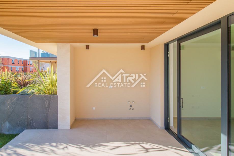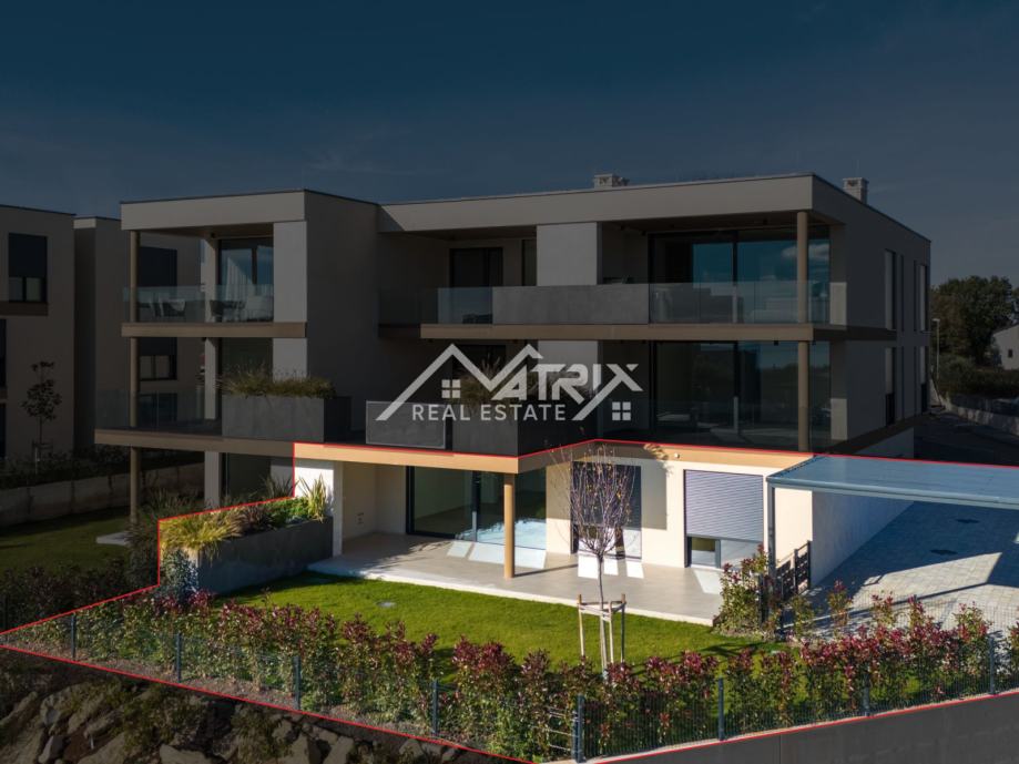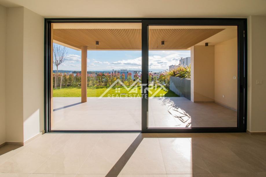 Novigrad - Luksuzan stan u prizemlju sa pogledom na more, samo 800 metara od mora! Novogradnja! Moguća je i kupnja putem kredita!
