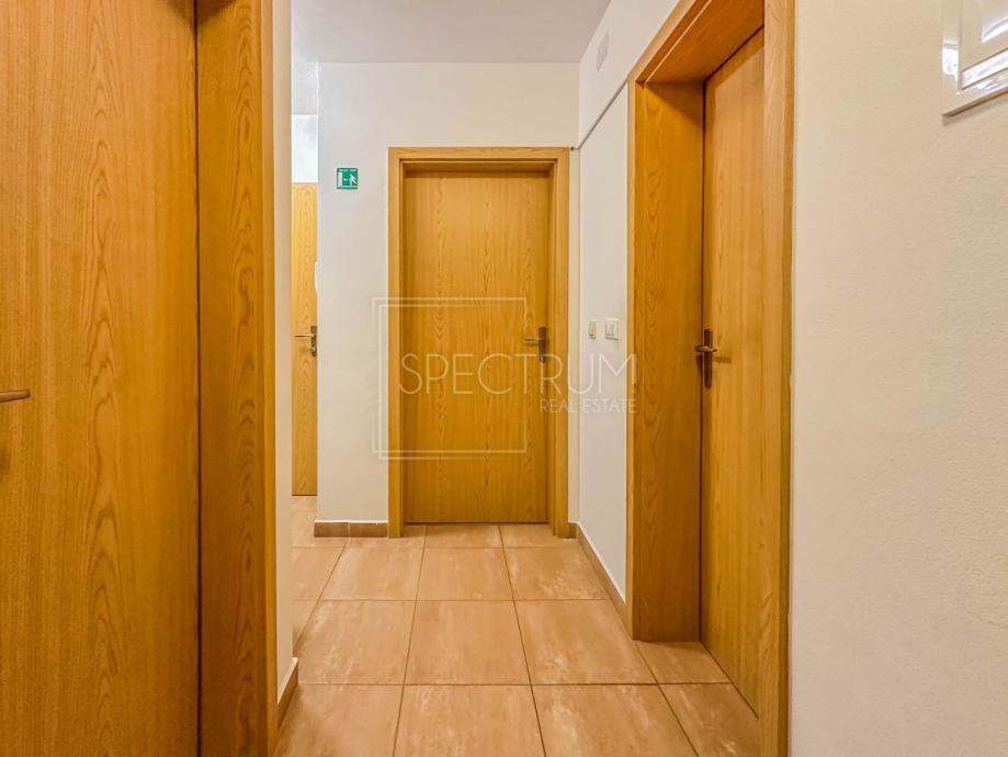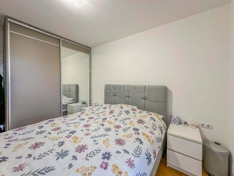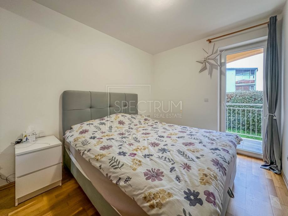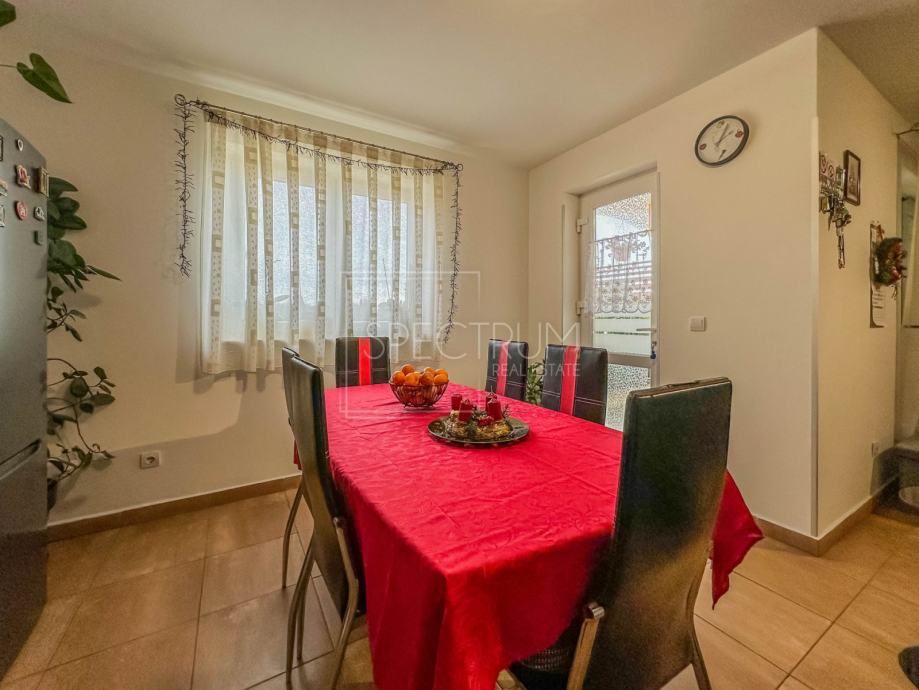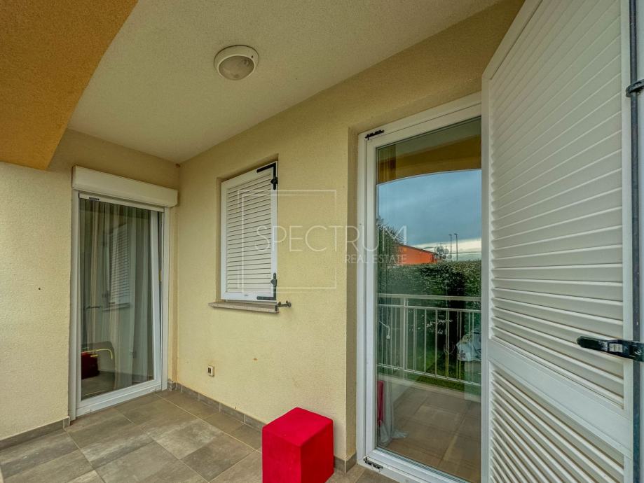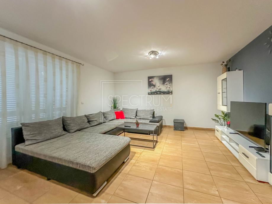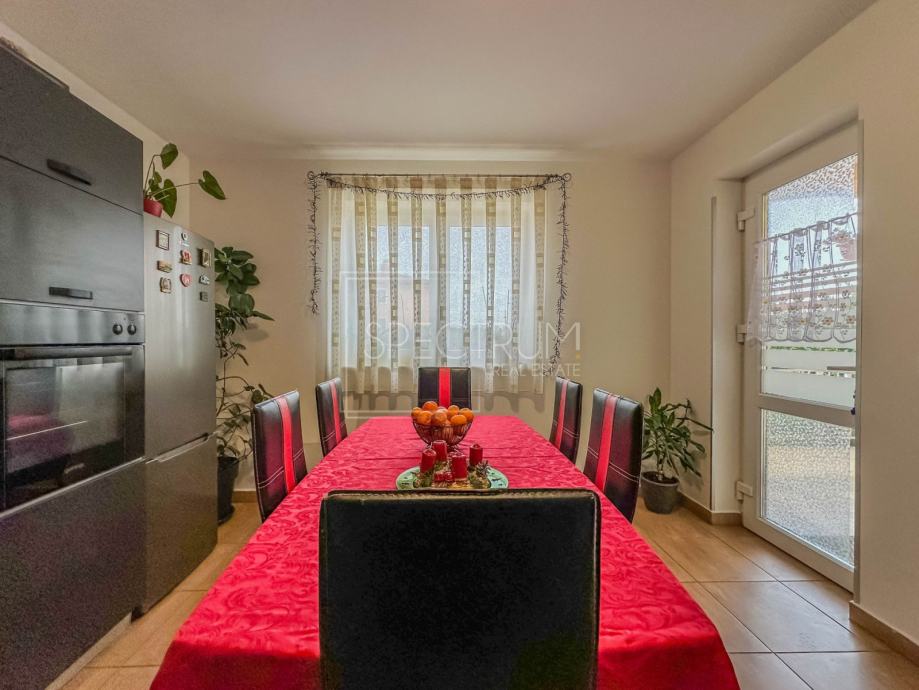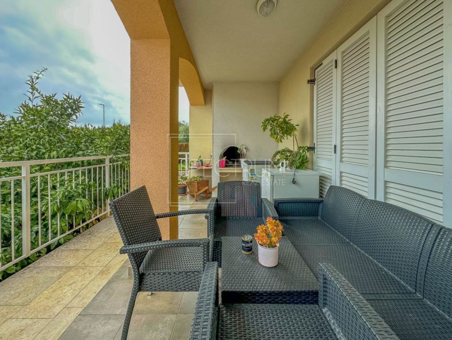 Stan se nalazi u prizemlju stambene zgrade, a površina stana iznosi 89.58 m2. Stan se sastoji od prostranog dnevnog boravka sa kuhinjom i blagovaonicom open space koncepta, 2 spavaće sobe, kupaonice, wc-a, hodnika i 2 natkrivene terase. Na manju natkrivenu terasu se izlazi iz spavaćih soba, a na drugu veću i natkrivenu terasu na kojoj se nalazi i roštilj, dolazi se iz dnevnog boravka i kuhinje. Terasa predstavlja prostor za uživanje i druženje. S obzirom na veću površinu stana i raspored prostorija, stan zaista pruža komfor. Grijanje u stanu regulirano je putem klima uređaja. Stan se prodaje namješten.
