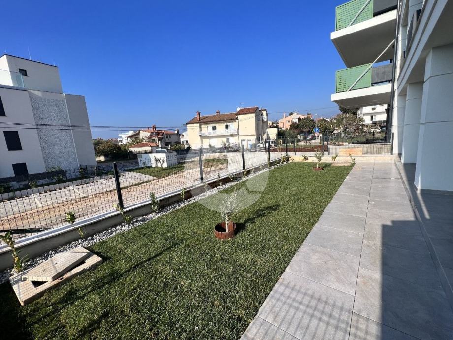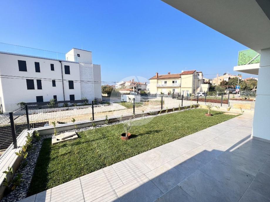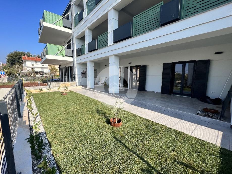 Prodaje se novoizgrađeni stan u prizemlju zgrade od ukupno 8 stanova. Stan se nalazi na mirnoj lokaciji, a udaljenost od mora i lijepo uređene plaže je 500 m. Stan ima 98 m2 te se sastoji od hodnika, 2 kupatila, 2 spavaće sobe, kuhinje s blagovaonicom i dnevnog boravka s izlazom na veliku natkrivenu terasu od 32 m2. Stan ima svoj privatan ulaz na kojem se nalaze 2 parkirna mjesta i vrt od 90 m2. Stan je moguće koristiti u stambene ili turističke svrhe. U blizini se nalaze svi sadržaji, a udaljenost od centra grada je 1000 m.
