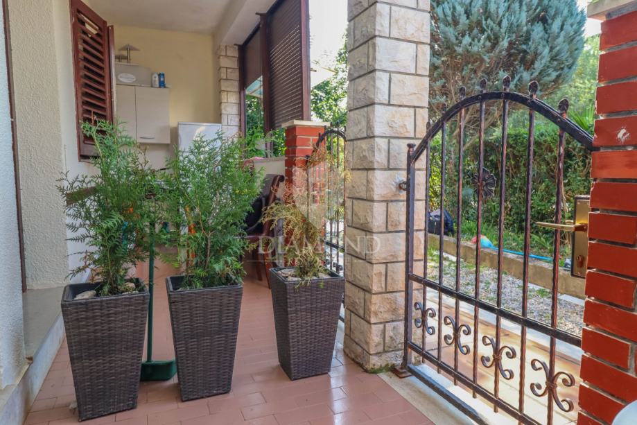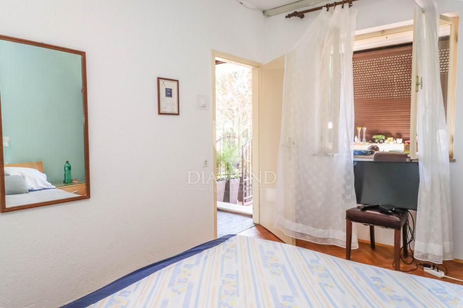 Soba se nalazi u prizemlju apartmanske kuće s vlastitim dvorištem. Soba ima svoj vlastiti ulaz i prostire se preko 23m2. Sastoji se ulaznog hodnika, kupaonice i spavaće sobe s prozorom. Soba ima zaseban ulaz i pristupa joj se kroz natkrivenu lođu od 10m2 gdje je smještena ljetna kuhinjica. Pored ove sobe se nalazi još jedna soba slične kvadrature i sličnog rasporeda. Adekvatnom renovacijom prema želji kupca ova se nekretnina može oblikovati u prekrasnu garsonijeru ili čak stan u prizemlju na svega 20 koraka od plaže i šetnice. Soba ima direktan pristup plaži i šetnici kroz zajedničko dvorište.