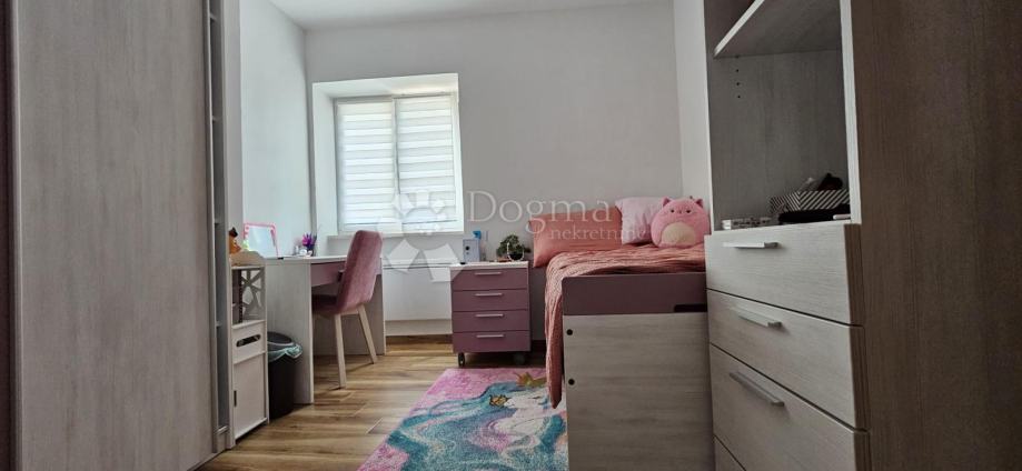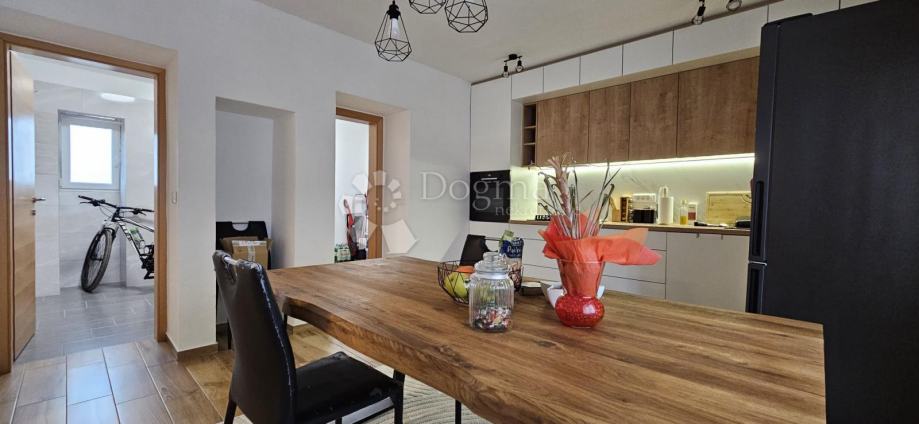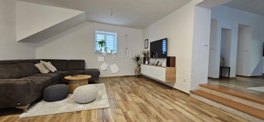 Prodaje se predivna kuća na 268m2, tlocrtno 88m2 podjeljena na prizemlje, 1.kat te visoko potkrovlje na jednu vodu. kuća je obnovljena 2023.godine. Ulazi se u hodnik iz kojeg dolazimo u Dnevni boravak. Dvije stepenice više ulazimo u lijepu kuhinju i blagovaonicu iz koje ima ide u veću ostavu te u kupaonu. Prekrasnim stepenicama sa drvenim gazištima dolazi se na 1. kat gdje se nalaze 3 spavaće sobe i jedno kupatilo. U visokom potkrovlju su dvije prostorije koje trenutno služe kao prostorije za dnevni boravak ali mogu postati dvije spavaće sobe. Jedna ima krovne prozore dok druga ima ostakljenu cijelu jednu zidnu stijenu, a pogled je na lijepi park iza kuće. Ispred kuće je jedno parkirno mjesto plus malo parkiralište od Grada za opciju više automobila. Kuća je kompletno namještena i sve ostaje osim nekoliko sitnica i osobnih stvari. Grijanje je na drva i i Norveški radijatori u spavaćim sobama. Kuća ima toplinsku izolaciju sa vanjske i unutarnje strane. Jedino stražnji dio kuće nema izrađenu fasadu, dok je sve ostalo, znači krov, prednja i bočna fasada, međukatna konstrukcija, kompletno renovirano, isto tako i voda i struja. Nekretnina zaista vrijedna pažnje, na mirnoj lokaciji udaljena od svih potrebnih sadržaja za život na 5 minuta pješke.