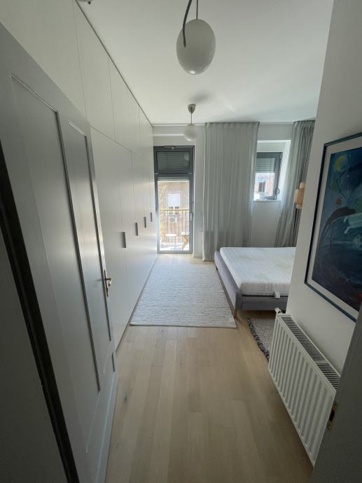 Stan je potpuno namješten modernim i funkcionalnim namještajem, opremljen svim potrebnim aparatima (perilica za rublje, perilica posuđa, hladnjak, pećnica itd.), spreman za useljenje odmah.