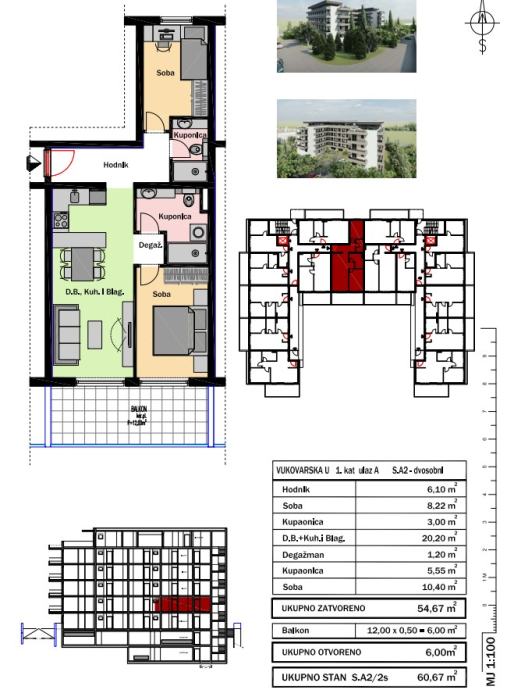 ● dvosoban stan ukupne površine 60,67 m2 (A2)