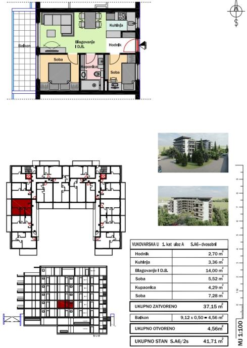 ● dvosoban stan ukupne površine 41,71 m2 (A6)