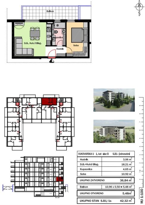 ● jednosoban stan ukupne površine 42,32 m2 (B1)