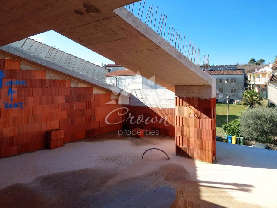 Stan je kompaktan, ali funkcionalno raspoređen, s dnevnim prostorom koji uključuje kuhinju i blagovaonicu, spavaćom sobom, kupaonicom i balkonom površine 5 m². Uz stan dolazi i parking mjesto za jedno vozilo, što dodatno olakšava život u ovom dijelu. S obzirom da se nalazi na vrhu zgrade, pruža mir i dobru privatnost, a balkon omogućuje uživanje na svježem zraku.