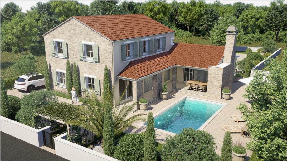 Prodaje se projekt u novogradnji, Vila sa bazenom, se velikom okućnicom na mirnoj lokacij.