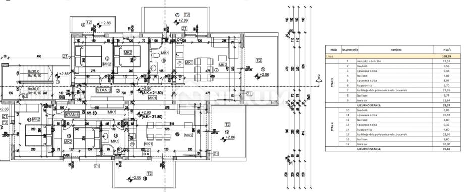 Na prodaju je dvosoban stan S4 na prvom katu zgrade ukupne korisne površine 76,65m2, od čega unutarnji dio stana ima površinu 53,25m2, dok površina terase iznosi 10m2, a površina balkona 13.40m2.