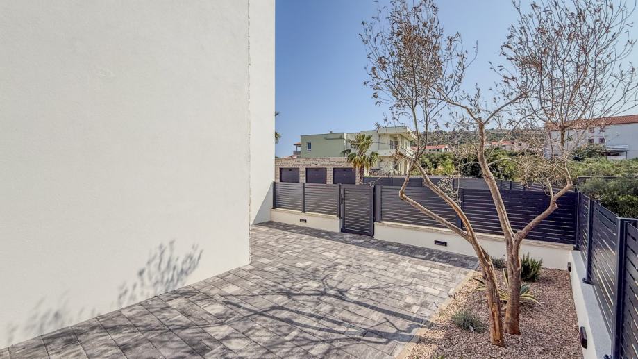 Posebnu prednost stana čini uređena okućnica, pružajući privatni vanjski prostor za opuštanje ili druženja, te lijep pogled na more. Mirna lokacija dodatno doprinosi kvaliteti boravka i privatnosti.