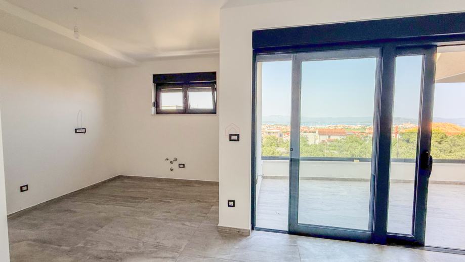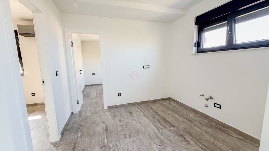 Stan se sastoji od prostranog dnevnog boravka s kuhinjom i blagovaonicom (29,18 m²), dvije spavaće sobe veličine 11,26 m² i 8,72 m², kupaonice od 4,30 m² te terase od 9,76 m² koja omogućuje uživanje u lijepom pogledu na more. Orijentacija stana prema sjeveru, zapadu i jugu pruža obilje prirodne svjetlosti tijekom dana, dok tlocrt omogućuje funkcionalnost i udobnost za svakodnevni život.