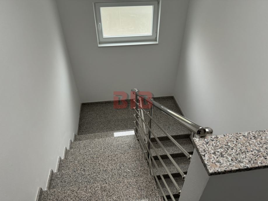 Stan se sastoji od 2 sobe,hodnika,dnevnog boravka sa kuhinjom i blagovaonom,kupaonice,lođe,ostave i pripadajućeg parkinga.