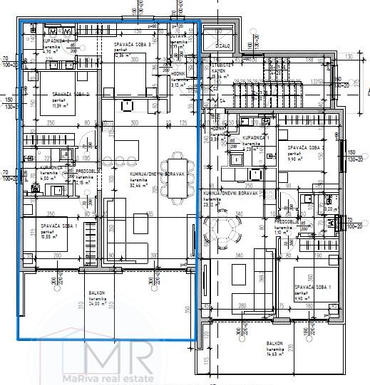 UKUPNO: 83,3m2+balkon 24m2=107,3m2