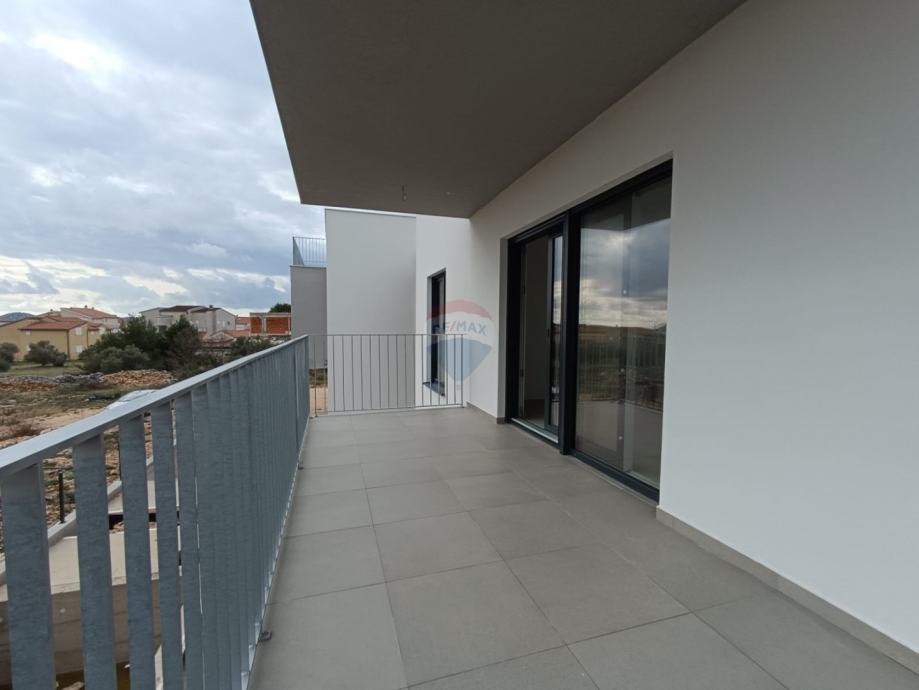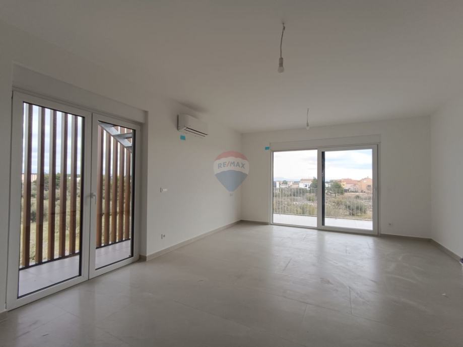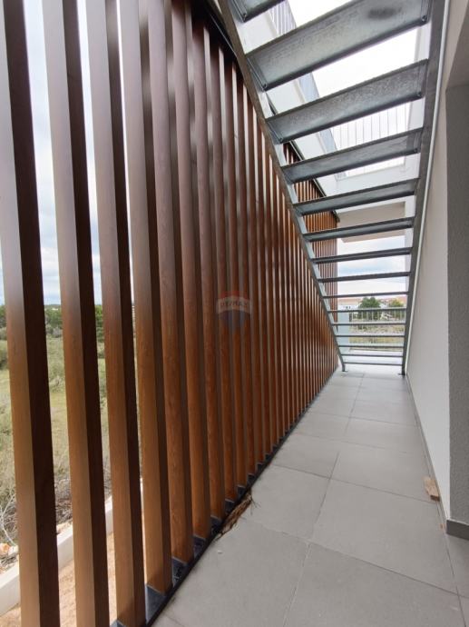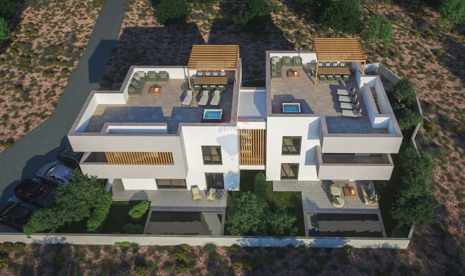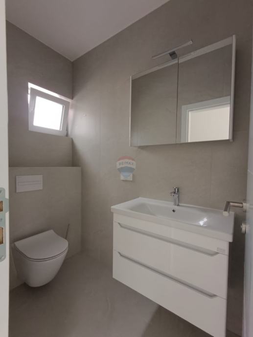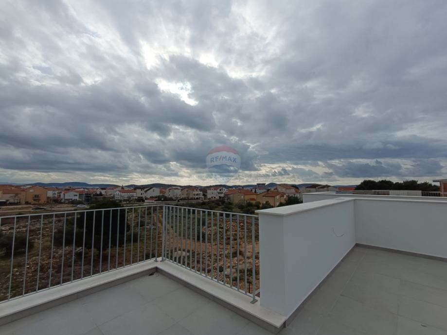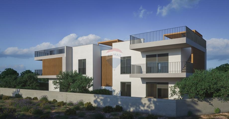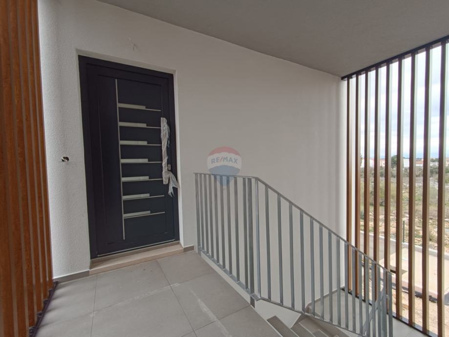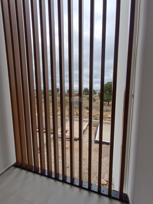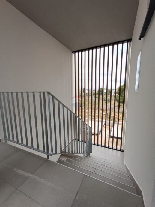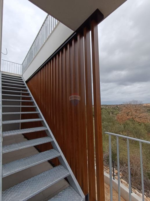 U Vodicama se prodaje stan na prvom katu novogradnje, smješten u stambenoj zgradi s četiri jedinice, na mirnoj lokaciji, oko 950 metara od mora i centra mjesta. Zgrada ima tri etaže – prizemlje, prvi kat i krovnu terasu – a stan S4 zauzima prvi kat s pristupom vlastitoj krovnoj terasi.