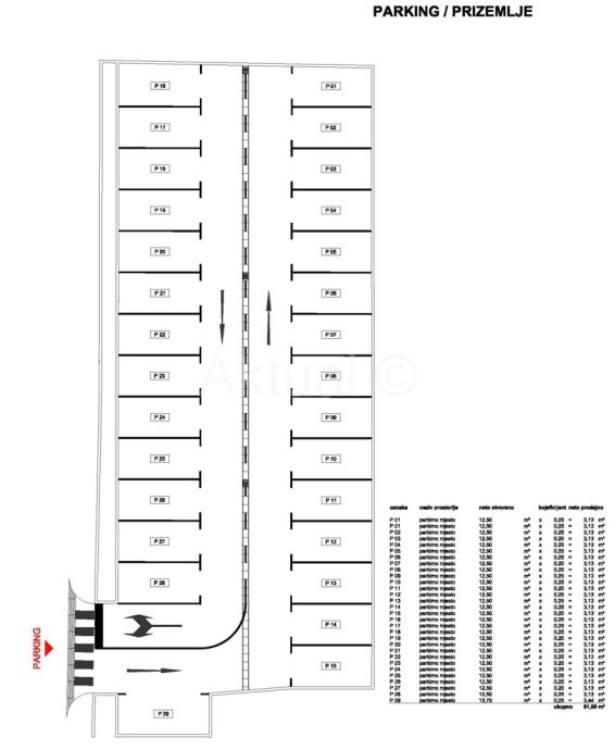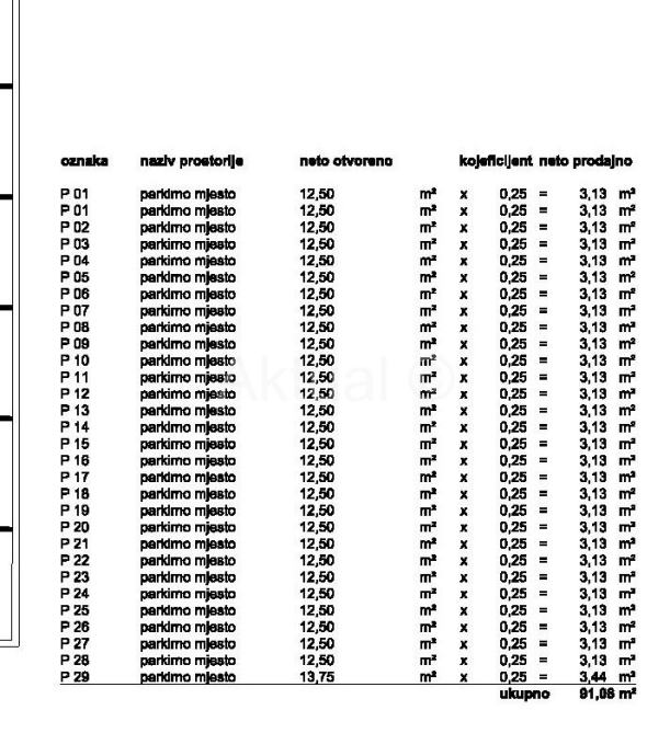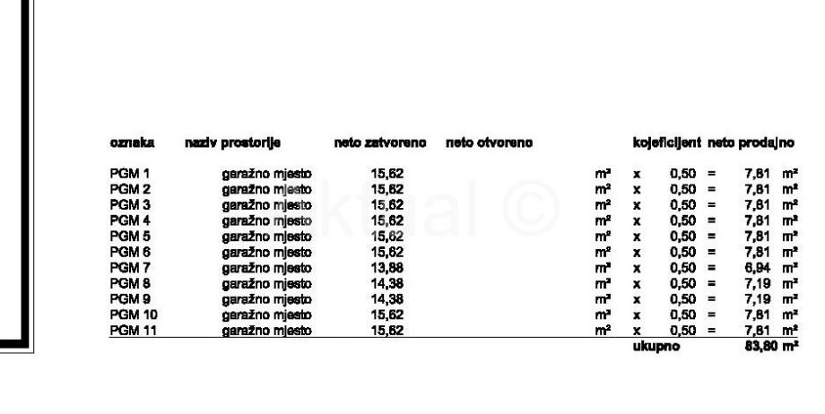 22 garažna parkirna mjesta na etaži podruma