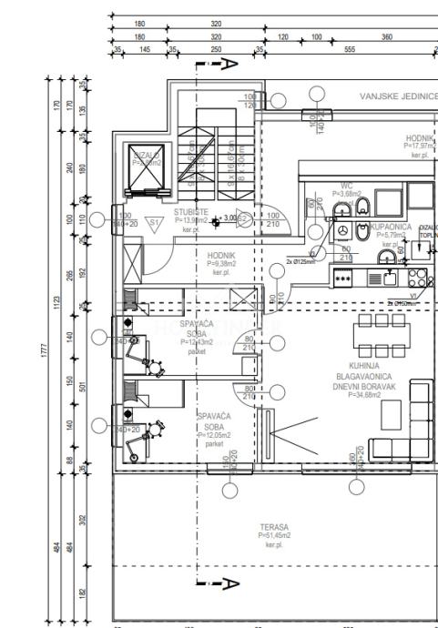 Natkrivena terasa: 30 m² (obračunski 15 m²)