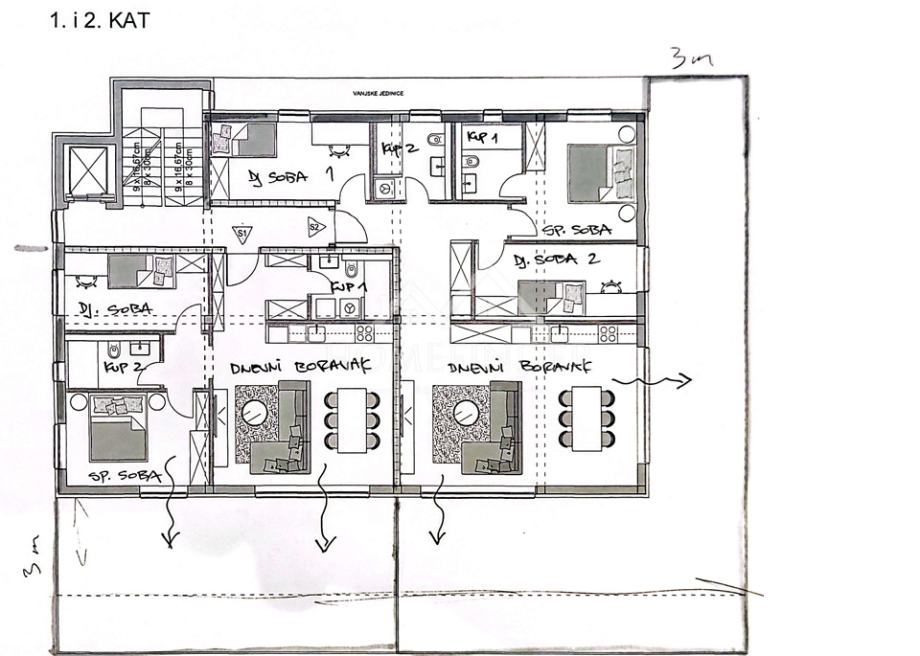 Parkirno mjesto i spremište: ukupno 30 m² (obračunski 15 m²)