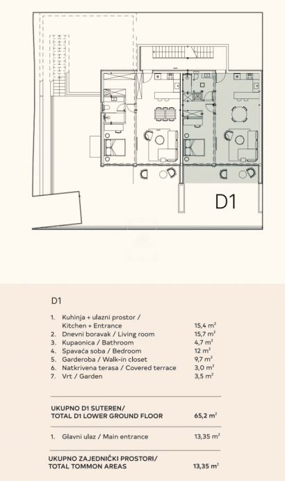 Novogradnja, 65 m2, terasa i vrt, GPM, Dubrovnik, D1 (prodaja)
