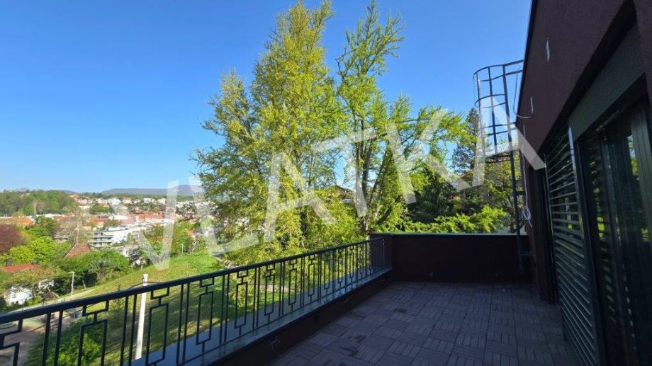 Sastoji se od 4 etaže, 2 odvojena stana, 5 spavaćih soba, 2 kuhinje, 2 dnevna boravka, blagavaonice, 4 kupaonice, toaleta za goste i terase s predivnim pogledom na grad.
