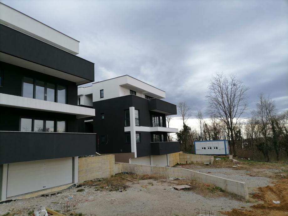 Stan je trenutno u fazi izgradnje, a budući kupac će trebati završiti unutarnje uređenje, uključujući pločice, parkete, sanitarije i namještaj prema vlastitim željama i potrebama. Zgrada je već osigurala temeljne instalacije (voda, struja, kanalizacija) i vanjske radove (fasada, stolarija), dok će preostali radovi biti potrebni na uređenju zajedničkih prostora i okoliša.