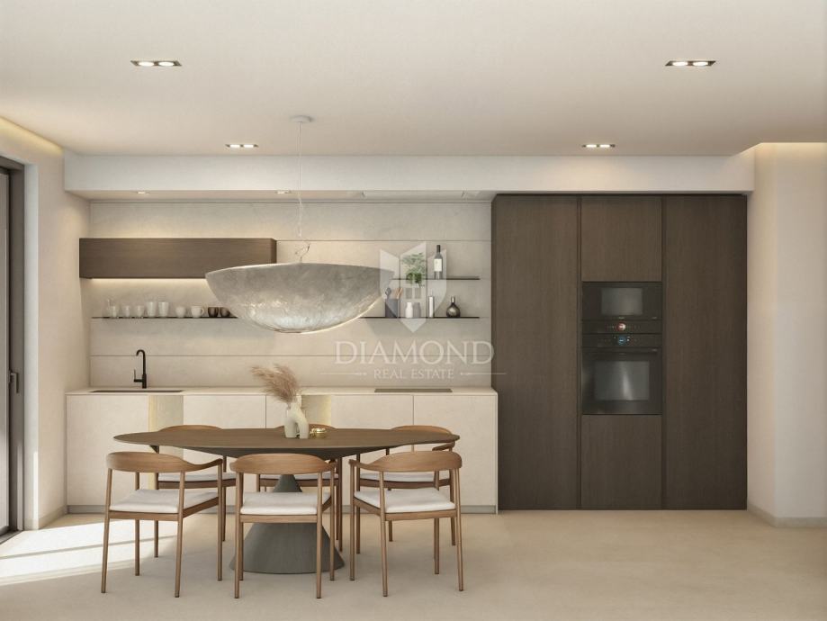 Predstavljamo vam ovaj ekskluzivni stan koji se nalazi tek nekoliko minuta vožnje automobilom od centra Rovinja. Stan se nalazi u vrhunskoj novogradnji, na mirnoj lokaciji koja nudi savršen sklad privatnosti i blizine svih sadržaja za kvalitetan život i odmor. Smješten tek nekoliko stotina metara od prekrasnih plaža, stan pruža jedinstvenu priliku za uživanje u svim čarima života uz more.