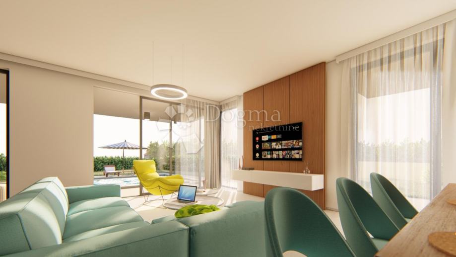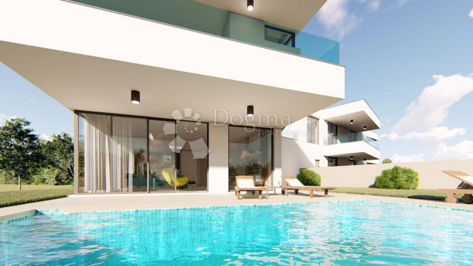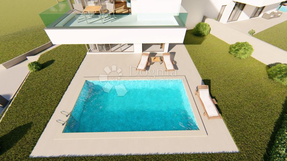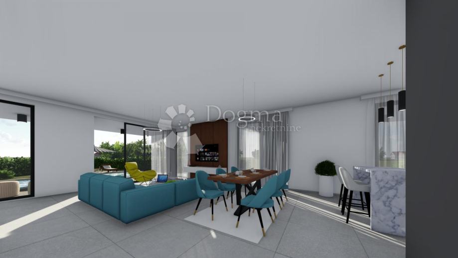 Moderna novogradnja površine 193m2 sa prostranom okućnicom i bazenom.