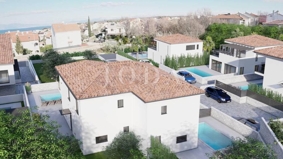 Malinska, prodaje se kvalitetna novogradnja površine 119,59 m2, 600 m od mora i centra Malinske. Sastoji se prizemlja i prvog kata. Prizemlje obuhvaća otvoreni prostor koji obuhvaća kuhinju s blagovaonom i dnevnim boravkom, wc i natkrivena terasa. Na prvom katu se nalaze tri spavaće sobe od kojih jedna spavaća soba ima vlastitu kupaonicu i natkrivenu terasu s pogledom na more, te još jedna kupaonica. Na okućnici od cca 200 m2 će se nalaziti bazen i velika terasa, a kući će pripadati i dva parkirna mjesta. Kuća će biti rađena s kvalitetnih materijala, sve prostorije će biti klimatizirane, ugrađeno električno podno grijanje, ALU rolete sa kliznim stijenama, a dijelovi fasade i okućnice će biti obloženi prirodnim kamenom.