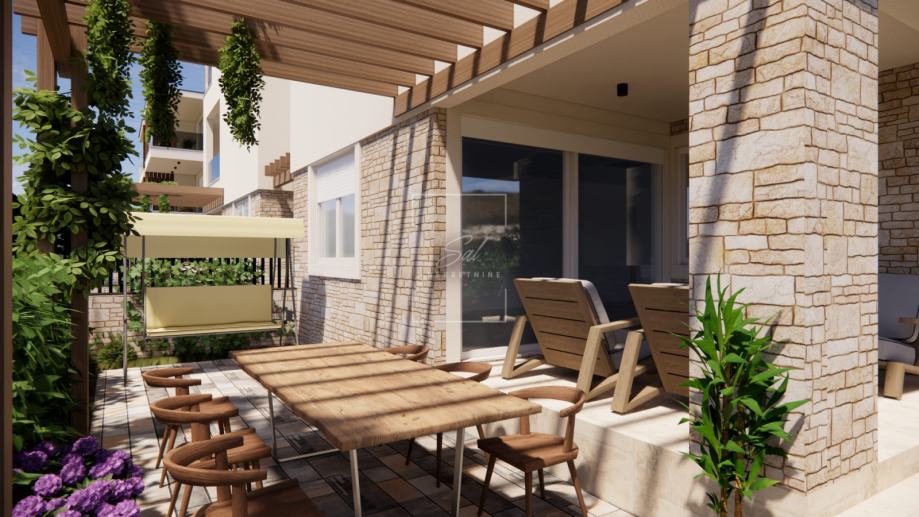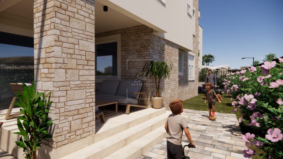 U ponudi je moderan i funkcionalan stan u prizemlju zgrade sa terasom, vrtom i parkirnim mjestom što ga čini idealnim odabirom za ugodan obiteljski život.