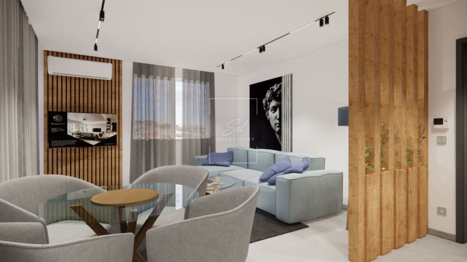 - Ekskluzivni premium troslojni parket unosi toplinu i eleganciju u sobe, dok kupaonice odišu luksuzom zahvaljujući vrhunskoj premium keramici.
