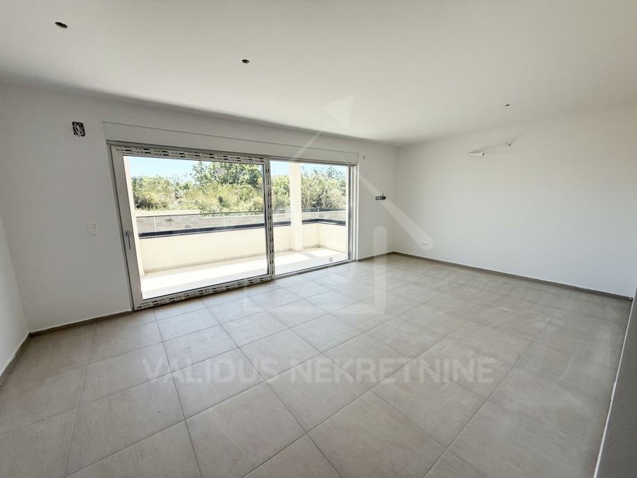 STAN 2 – nalazi se u prizemlju, a sastojat će se od dnevnog boravka, blagovaone, kuhinje, kupaonice, spavaće sobe, terase, vrta i vanjskog parkirnog mjesta, ukupne neto korisne površine cca 60,21 m2. Predmetni stan imat će tlocrtnu neto površinu 43,15 m2. Terasa će imati bruto površinu 9,45 m2, natkrivena, uz obračunski koeficijent 0,50%, što iznosi neto 4,73 m2. Parkirno mjesto oznake PM 1 će imati površinu 12,50 m2 uz obračunski koeficijent 0,25%, što iznosi neto 3,13 m2. Vrt će imati bruto površinu 94 m2, obračunski koeficijent 0,10 %, što iznosi neto 9,4 m2.