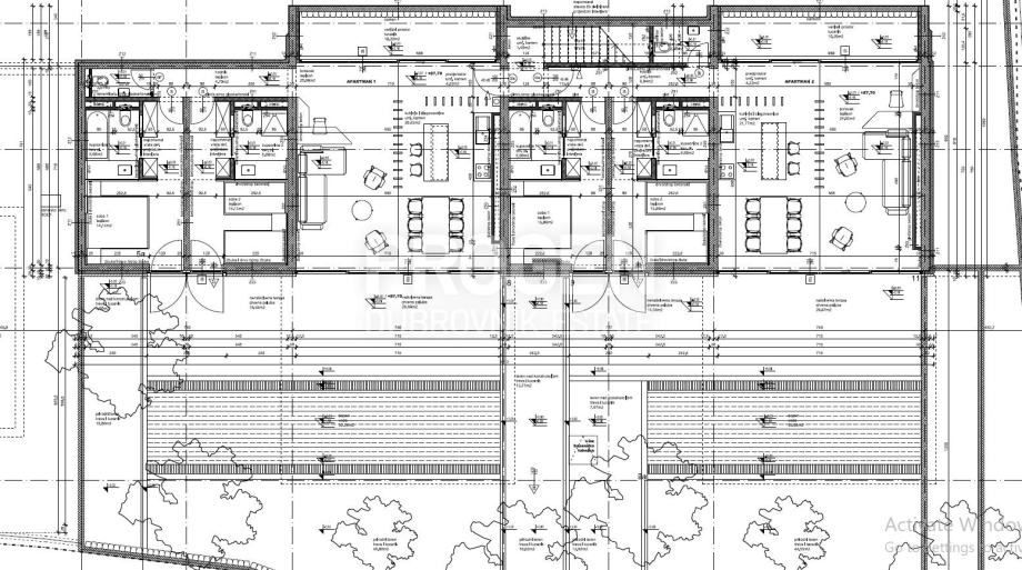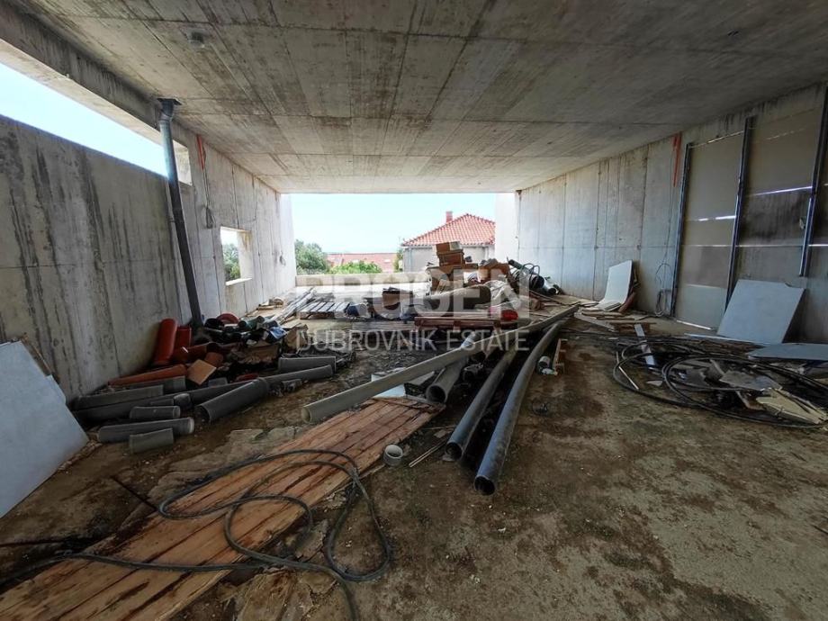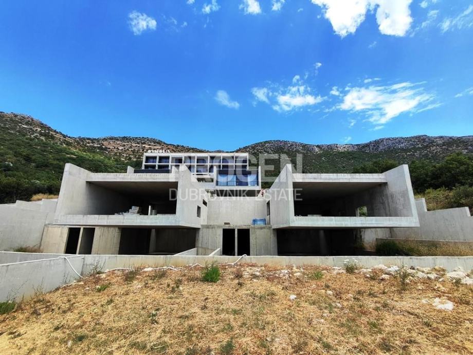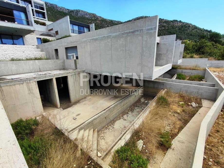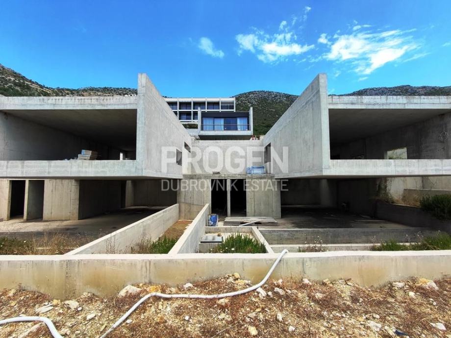 Zgrada s četiri luksuzna apartmana, izgrađena do razine grubih betonskih radova. Prodaje se kompletna građevina s građevinskom dozvolom, u zatečenom stanju. Sastoji se od dva apartmana u prizemlju, svaki sa vlastitim bazenom, i dva na katu. Apartmani su površine oko 100 m2, s dvije spavaće sobe, tri kupaonice i velikim dnevnim dijelom. Apartmani u prizemlju, uz bazene, imaju i po cca 140 m2 terase, vrta i sunčališta. Svi apartmani su orijentirani prema jugu, s velikim staklenim plohama. Zgrada se nalazi u Brsečinama, mirnom mjestu u blizini Dubrovnika.