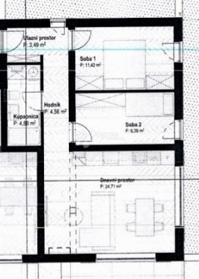 Stan je moderno projektiran i funkcionalnog rasporeda te se sastoji od dnevnog boravka s kuhinjom i blagovaonicom u open-space konceptu, dvije spavaće sobe, hodnika i kupaonice. Prostor je svijetao i ugodan, a raspored omogućuje maksimalnu iskoristivost kvadrature, čineći stan idealnim za obiteljski život, odmor ili turistički najam.
