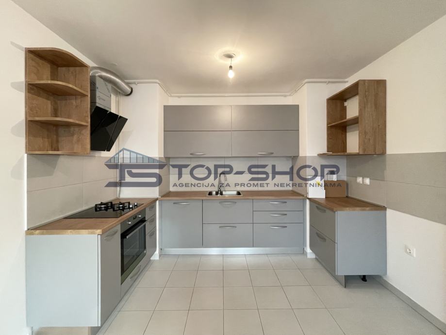 Stanu pripada parkirno mjesto u garaži površine 18 m2. Stan je nenamješten osim kuhinje koja je kompletno namještena.