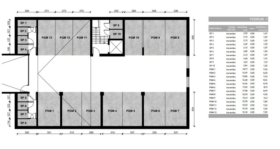 Zgrada se sastoji od jedne podzemne etaže (PO – podrum) i četiri nadzemne etaže (P+2K+uvučena etaža).