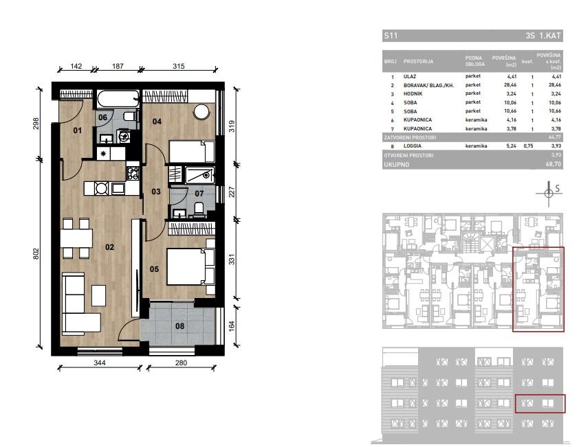 NOVOGRADNJA DUGAVE/KRAMARIĆI, 3SB - 1. KAT - 68,70 m2 BEZ PROVIZIJE! (prodaja)