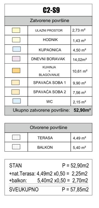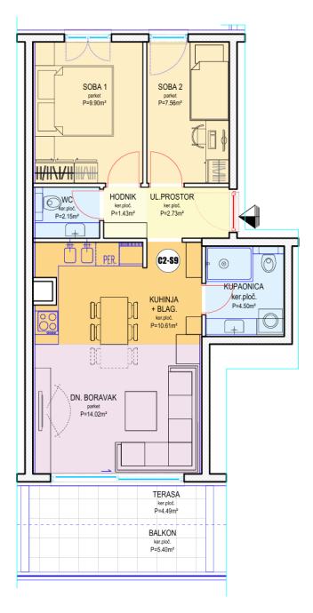 Navedeni model dvosobnog stana 57,58m2 se nalazi na 3.katu (zadnji kat). Cijena: 374.270,00€.