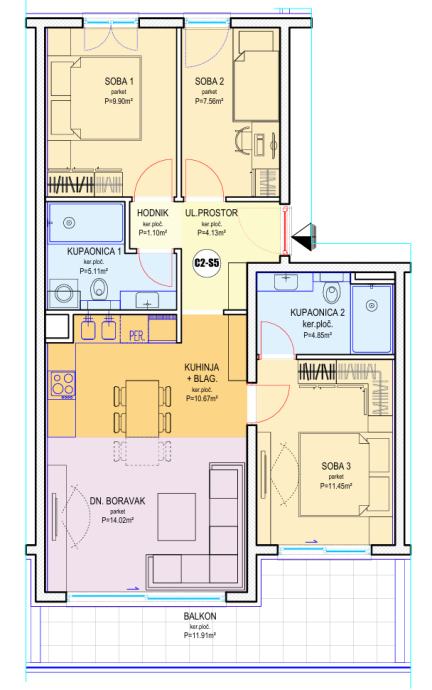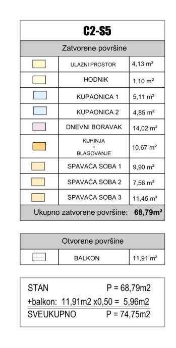 Navedeni model trosobnog stana 74,75m2 također imamo u ponudi i na sljedećim etažama: suteren, prizemlje, 1.kat, 2.kat.