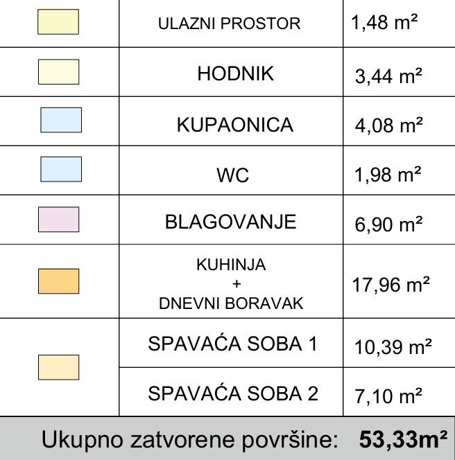 Navedeni model dvosobnog stana 53,33m2 također imamo u ponudi i na sljedećim etažama: suteren, prizemlje, 1.kat, 2.kat.