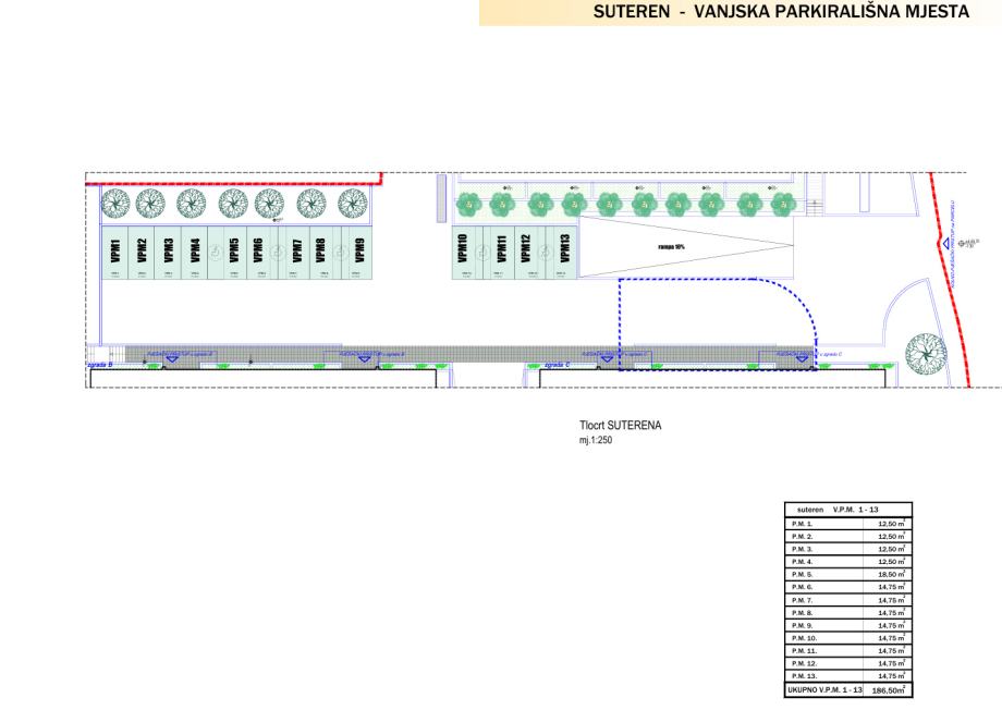 Cijena parkirnih mjesta u podzemnoj garaži iznosi 2.000 €/m², dok vanjska parkirna mjesta iznose 1.800 €/m². Cijena spremišta je 2.200 €/m².