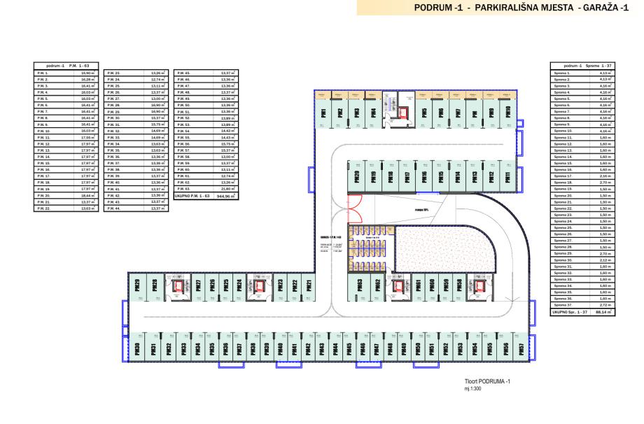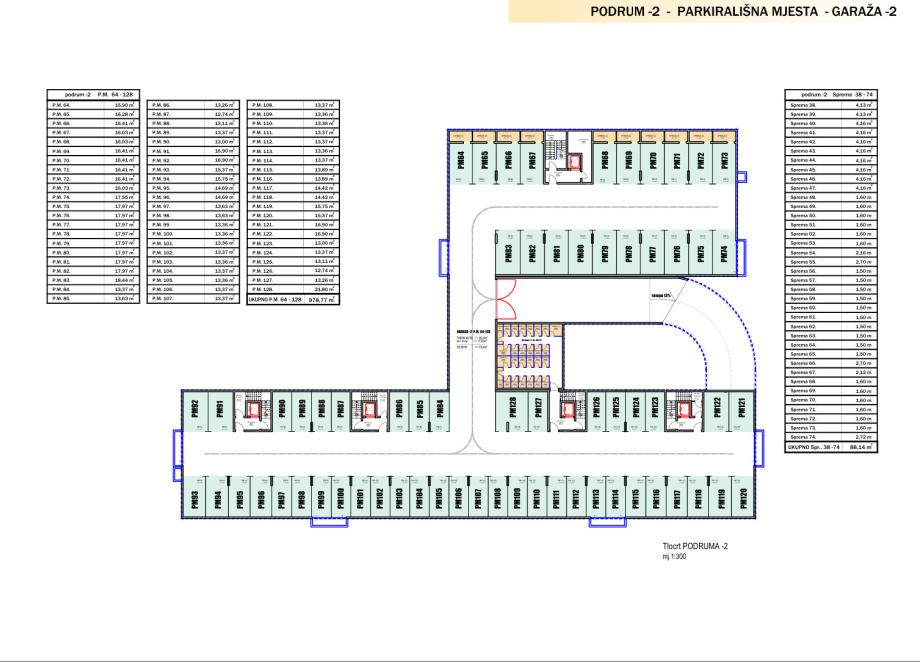 Ispod zgrada nalazi se podzemna garaža na dvije etaže iz koje se stubištem ili liftom direktno dolazi do stanova.