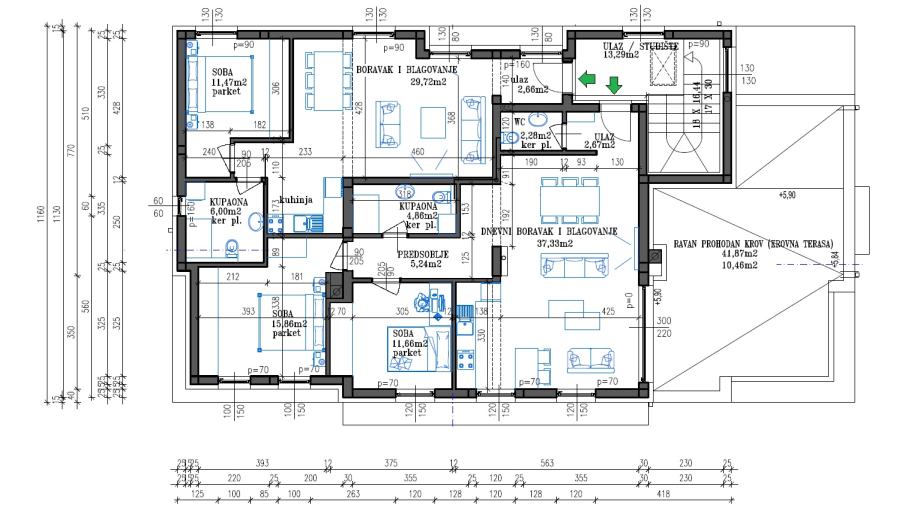 - trosobni stan ima prostranu terasu od cca 40 m2,