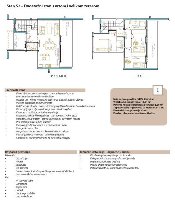 NOVOGRADNJA - DVOETAŽAN ČETVEROSOBAN STAN SA VRTOM I PARKINGOM 130.90 (prodaja)