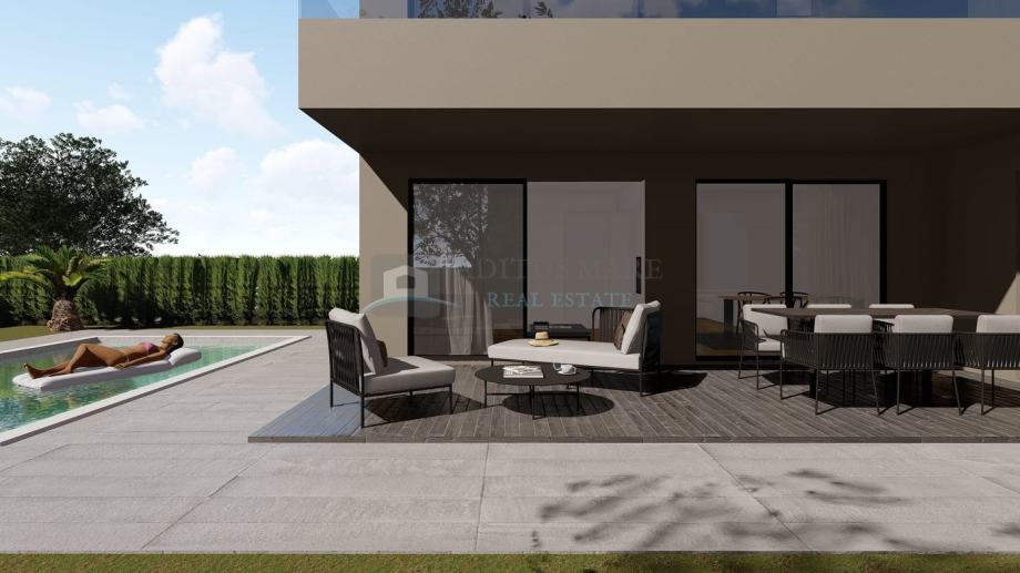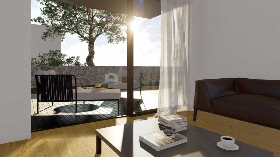 Svaki objekt se sastoji u prizemlju od natkrivenog ulaza, predprostora, kupaonice, spremišta, kuhinje i blagovaonice s dnevnim boravkom, spavaće sobe i ljetne kuhinje, a na katu od predprostora, dvije kupaonice, tri spavaće sobe i dvije terase. Vertikalna