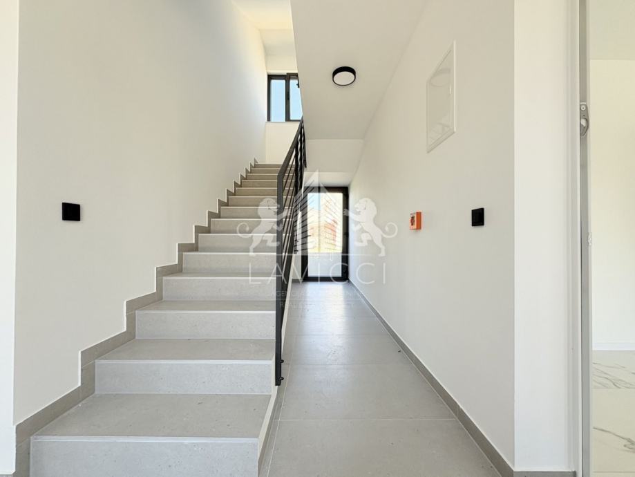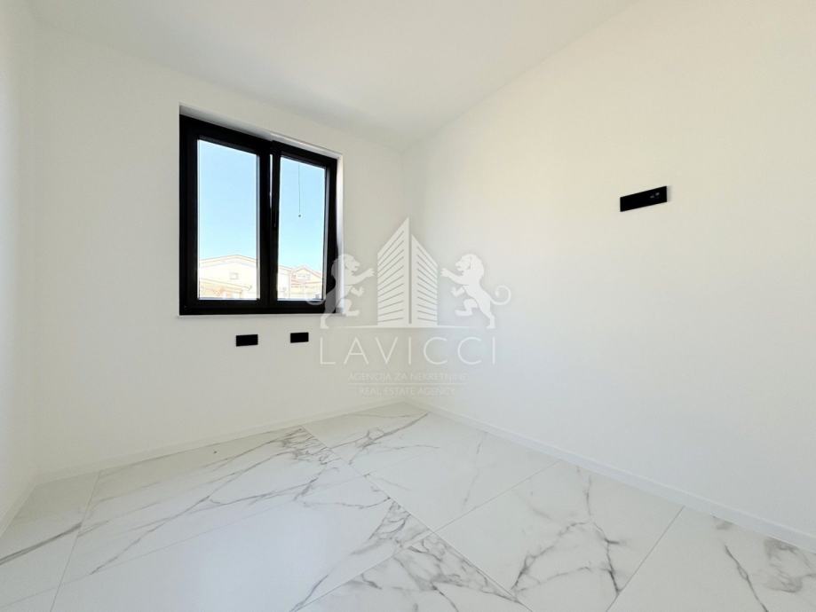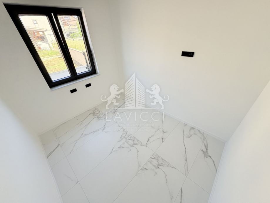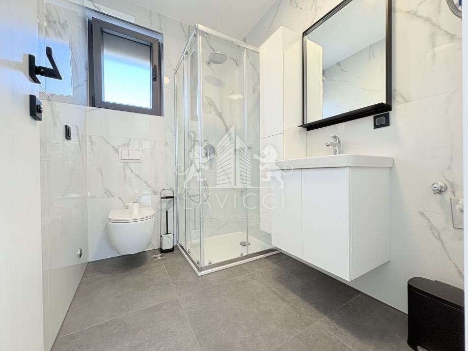 Zgrada je građena ciglenim termo blokom, obložena je stiropor fasadom debljine 10cm. Postavljena je PVC stolarija antracit boje s obje strane te ALU roletama s električnim podizačima i komarnicima, dok su balkonske stijene aluminijske. Grijanje i hlađenje je izvedeno putem multi-split sistema klima uređaja (s WI-FI upravljanjem) u svim prostorijama. Dodatno je u kupaonici postavljeno podno grijanje na struju. Podovi su obloženi keramičkim pločicama vrhunske kvalitete, te su u kupaonici ugrađene sanitarije proizvođača Grohe i Tece, a kada je od lijevanog mramora. Postavljena su protuprovalna i protupožarna ulazna vrata s video portafonom.