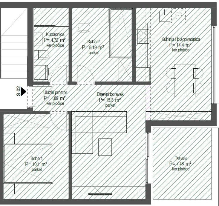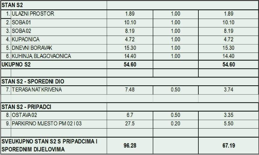 Stan oznake S2 na 1.katu stambene zgrade u izgradnji ukupne korisne površine 67.19m2