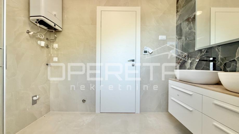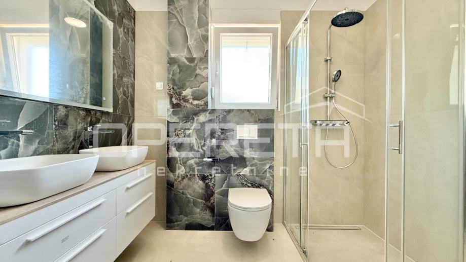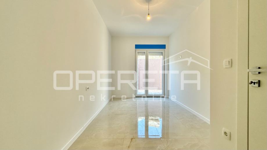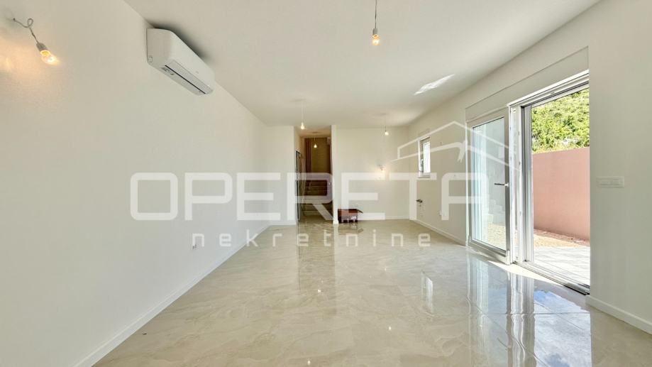 Stan se nalazi u prizemlju zgrade. Sastoji se od kuhinje, dnevnog boravka sa blagavaonicom, dvije spavaće sobe, jedne kupaonice, WC-a, spremišta i balkona. Stanu također pripada veliki vrt te dva parking mjesta.