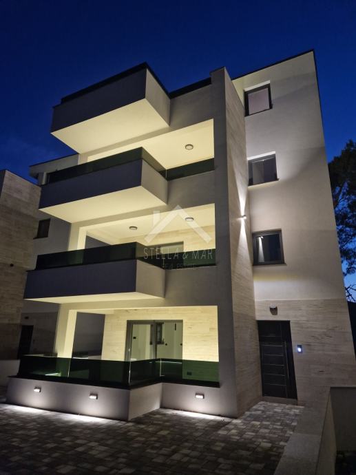 Površine je 81.08m2 i raspolaže sa hodnikom, dnevnim boravkom, kuhinjom, blagovaonom, dvije spavaće sobe od kojih jedna ima vlastitu kupaonu te dodatnom kupaonom i malim spremištem. Apartman ima prostranu terasu. Nalazi se u mirnoj i slijepoj ulici u samom centru Vira.