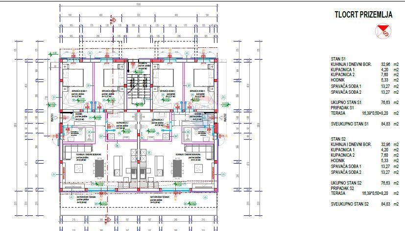 Sa svojih 93 m2 ukupne površine i 84,83 m2 korisne površine, stan se sastoji od hodnika, dvije prostrane spavaće sobe, dvije kupaonice, open space kuhinjom i blagovaonicom te dnevnim boravkom koji vodi na terasu od 17 m2.