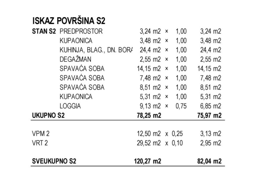 • VPM 2: 12,50 m2 bruto / 3,13 m2 neto (koeficijent 0,25)