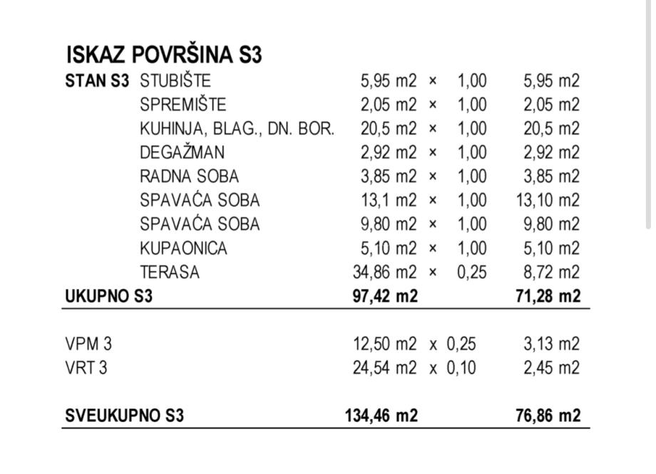 • VPM 3:12,50 m2 bruto / 3,13 m2 neto (koeficijent 0,25)